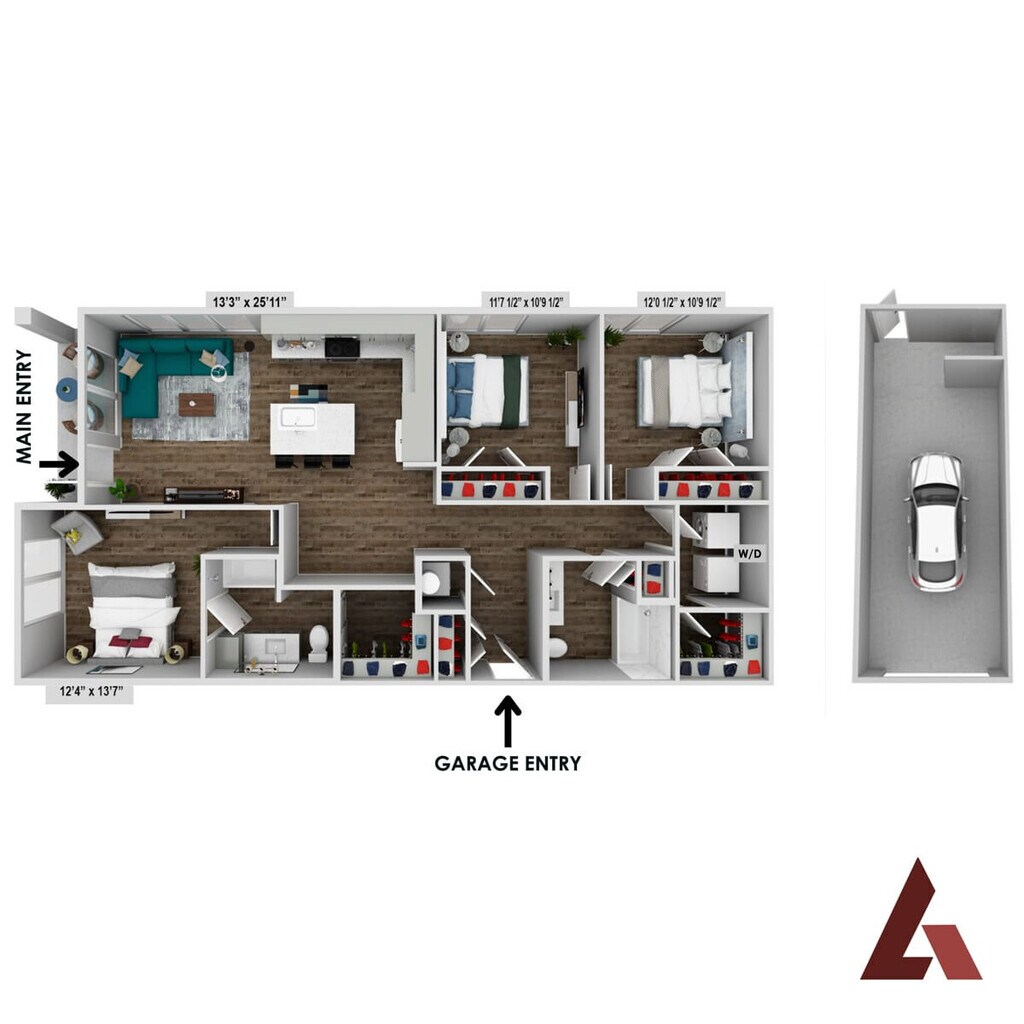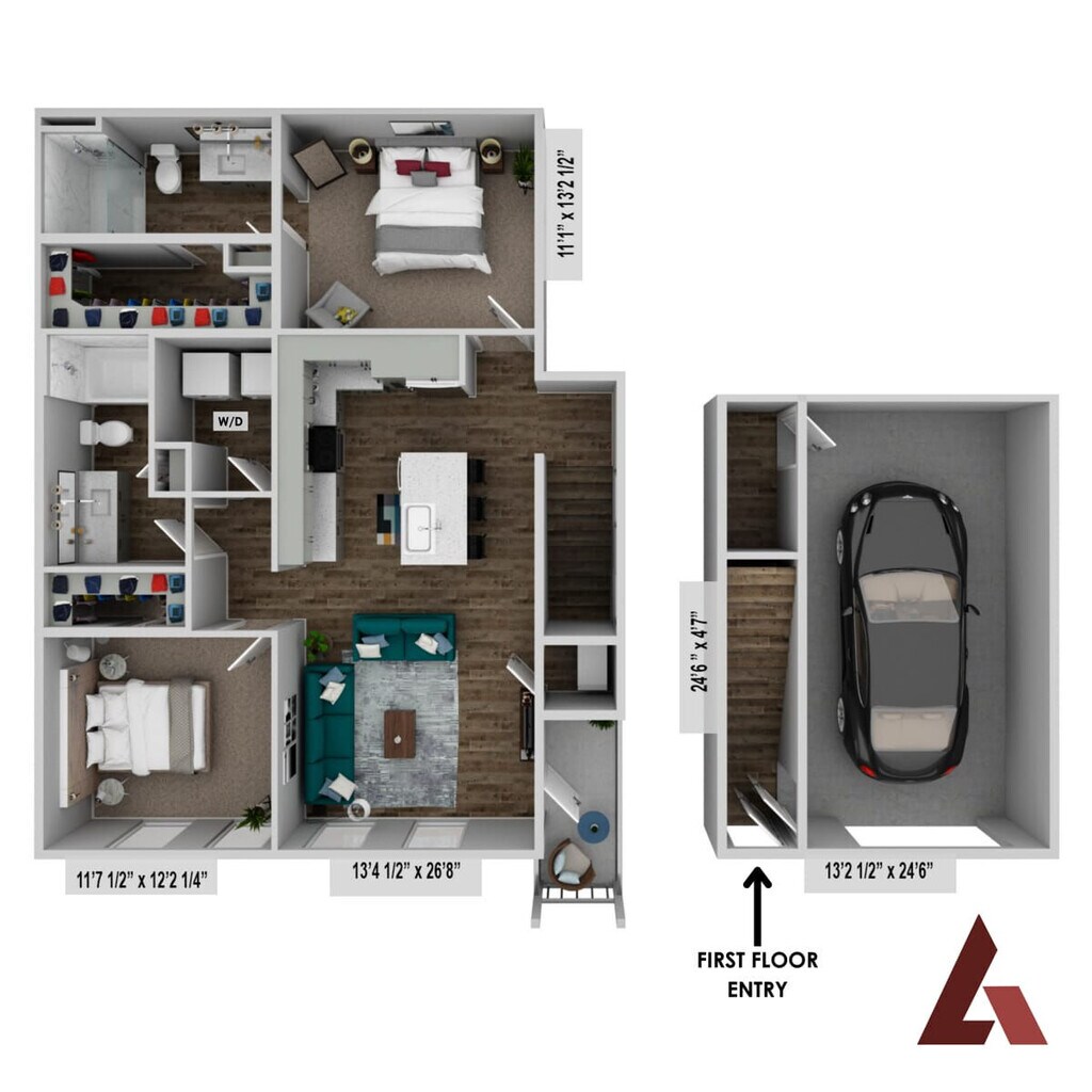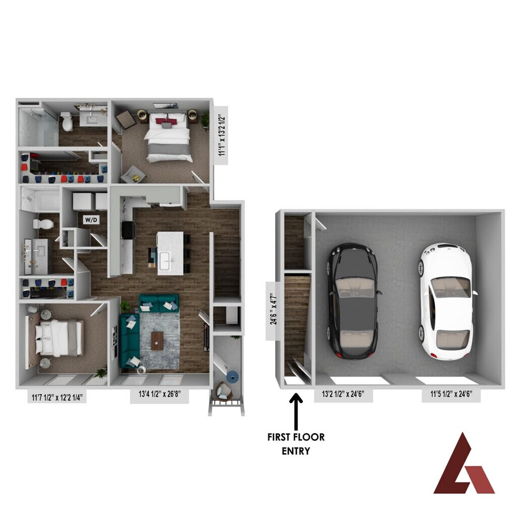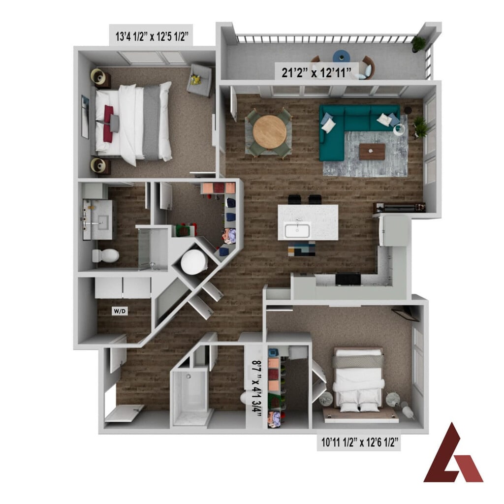 Modelo de apartamento: EndeavorDesde $1,9142 Dormitorios, 2 Baños, 1067 sq ftDisponible Ahora![]()