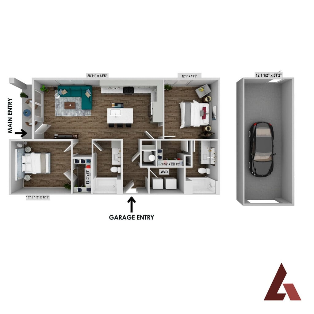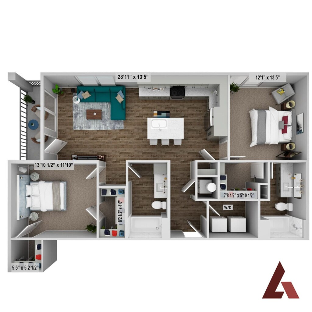 Modelo de apartamento: AscentDesde $1,7752 Dormitorios, 2 Baños, 1136 sq ftDisponible Ahora![]()