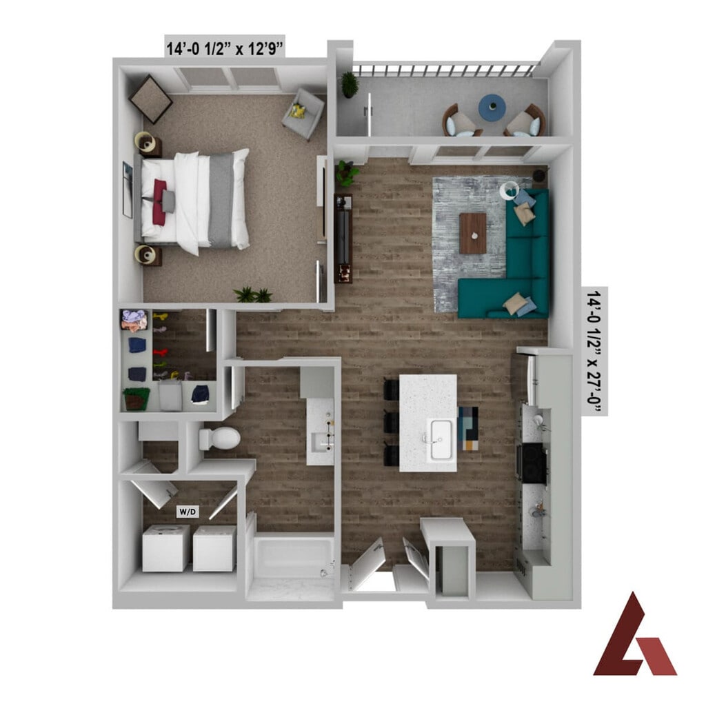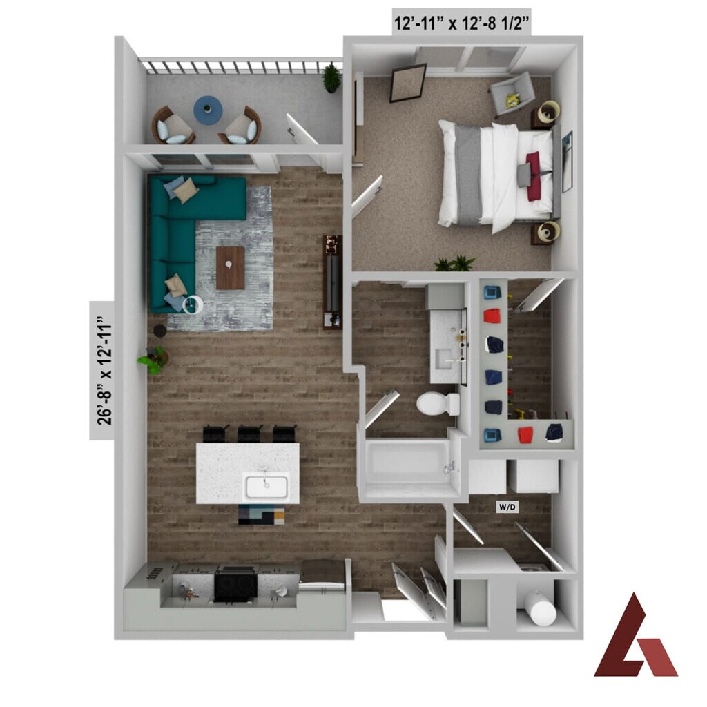 1 Dormitorio, 1 Baño, 779 pies²El más grandeEsta opción tiene las unidades más grandes para este modeloGalería del Modelo