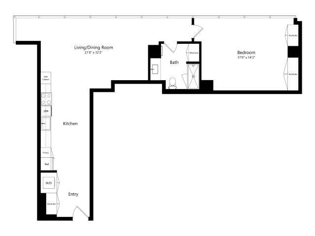 1 Dormitorio, 1 Baño, 905 pies²Disponible March 1, 2026Galería del Modelo