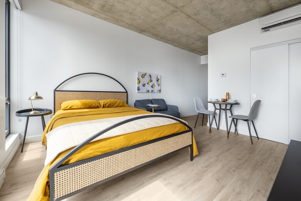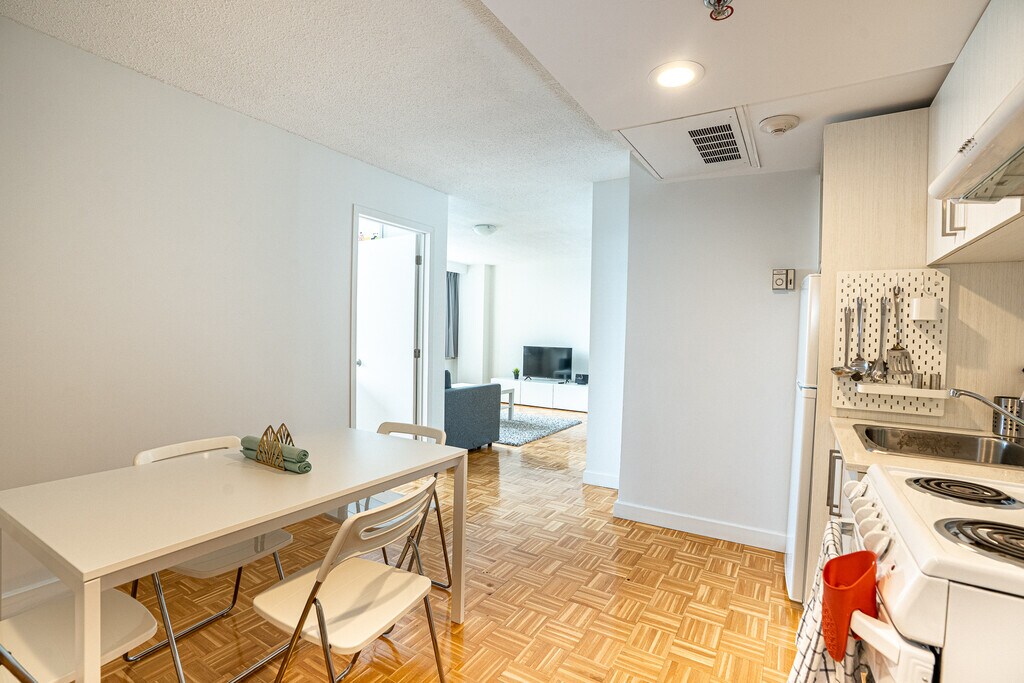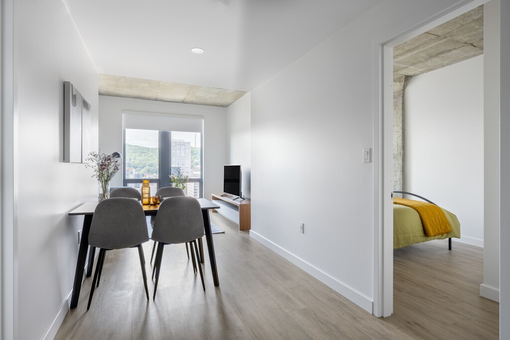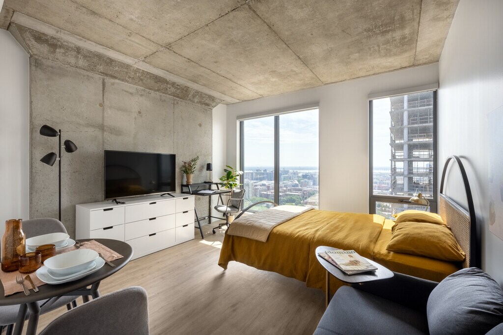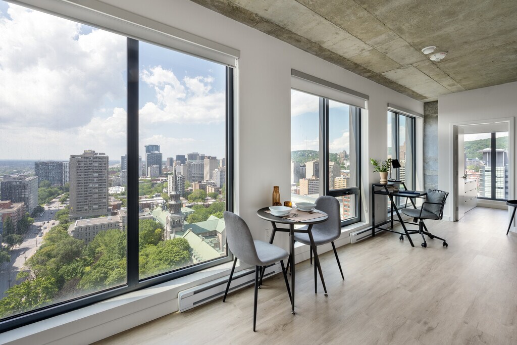 Welcome to Appartements Dorchester, a new building situated at 1555 René-Lévesque W. in downtown Montreal. Located at walking distance from Concordia University, Sainte-Catherine street, Guy-Concordia metro station, and more, the Dorchester Appartements are perfectly located to help students and young professionals get the most out of living in downtown Montreal. Building features: -24/7 security -Elevators -Indoor parking available ($$) -Storage space available ($$) -Free WIFI in all common areas -On-site management and maintenance team -5000 SQ FT of common space including a gym, swimming pool, terrace, pool table, coworking space and laundry room. Unit features: Kitchen appliances included (fridge, stove and oven) Everything is included: Hot water, electricity, A/C, heating and high speed internet (100 Mbit/s) Move in, unpack, and make yourself at home!
