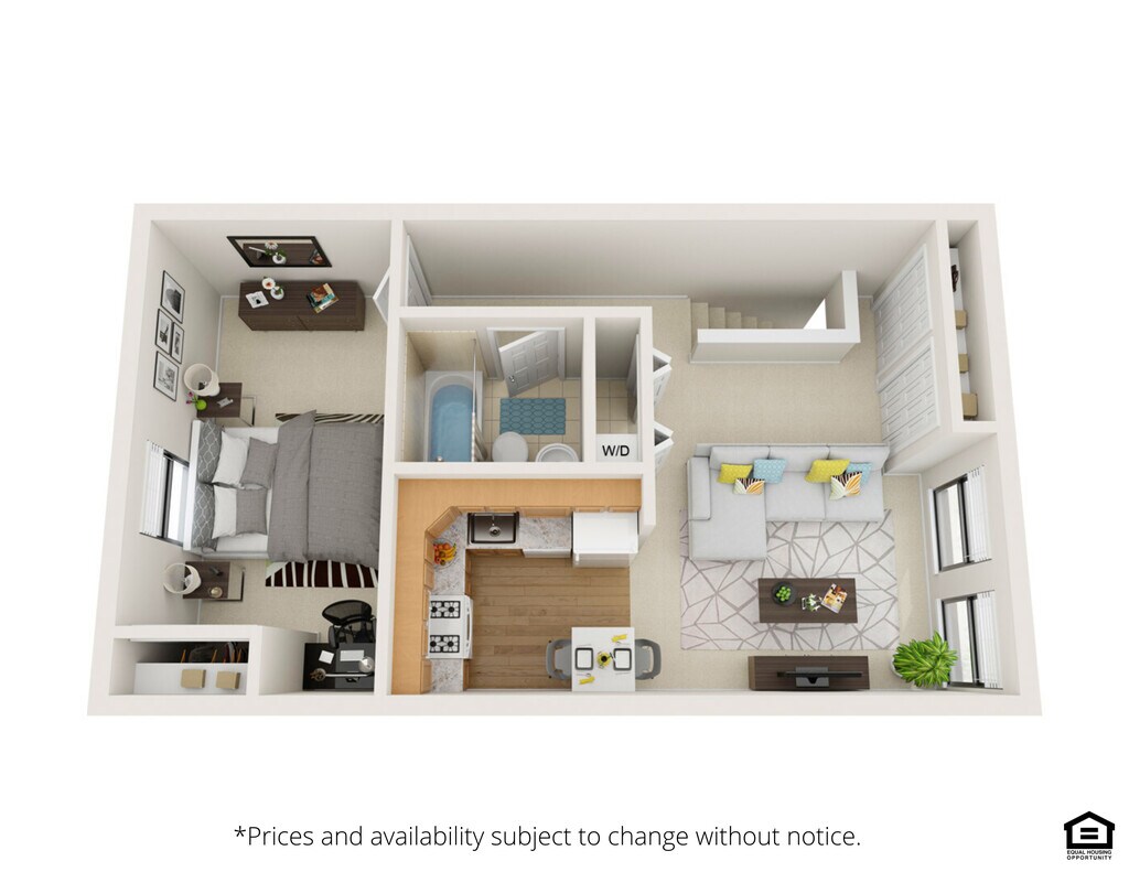 1 Dormitorio, 1 Baño, 620 pies²Disponible AhoraGalería del Modelo
