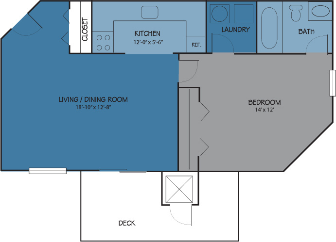 1 Dormitorio, 1 Baño, 680 pies²Disponible AhoraGalería del Modelo