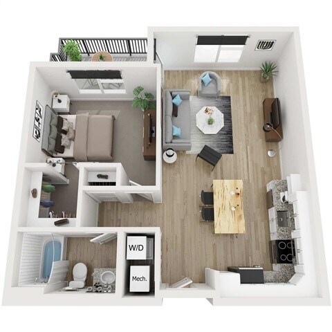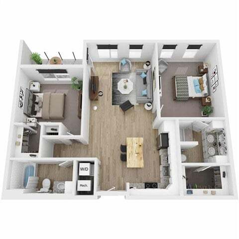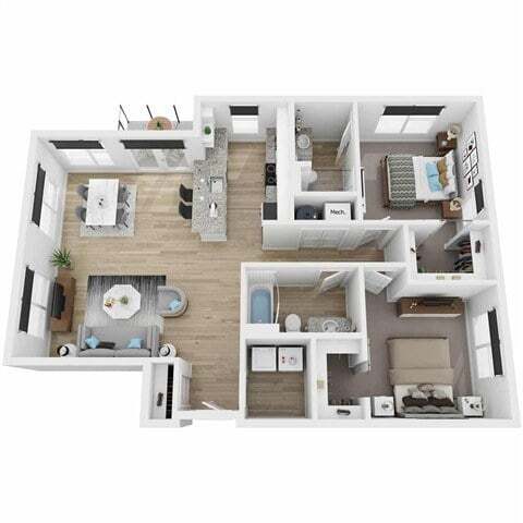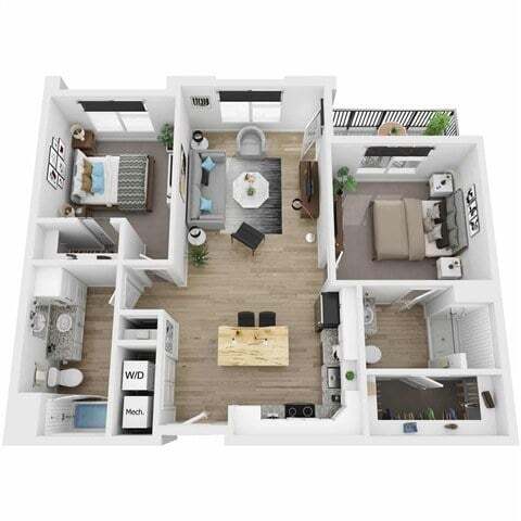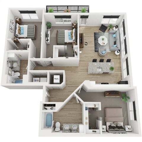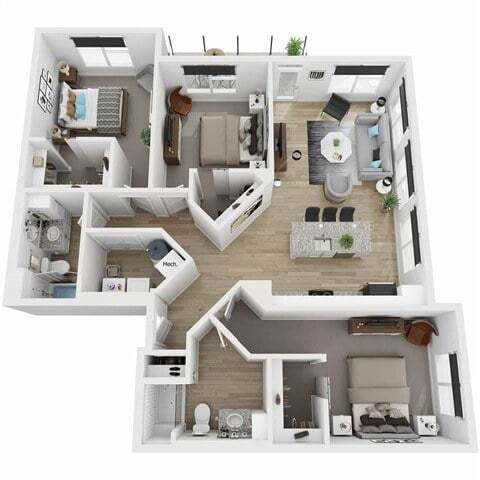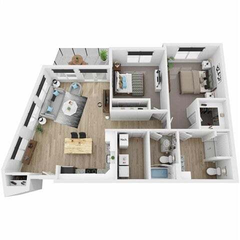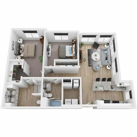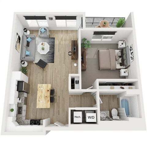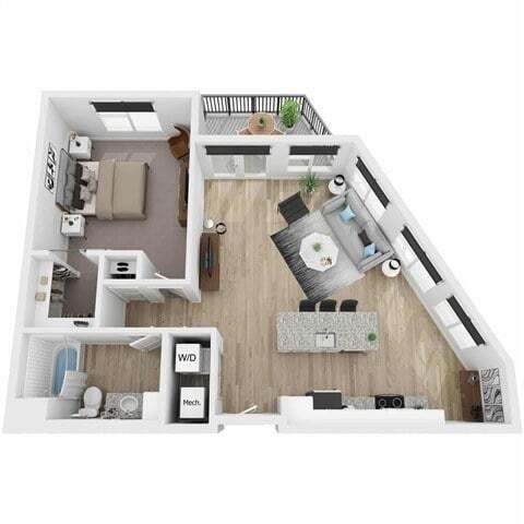 Modelo de apartamento: AuroraDesde $1,6951 Dormitorio, 1 Baño, 722 sq ftDisponible Ahora![]()