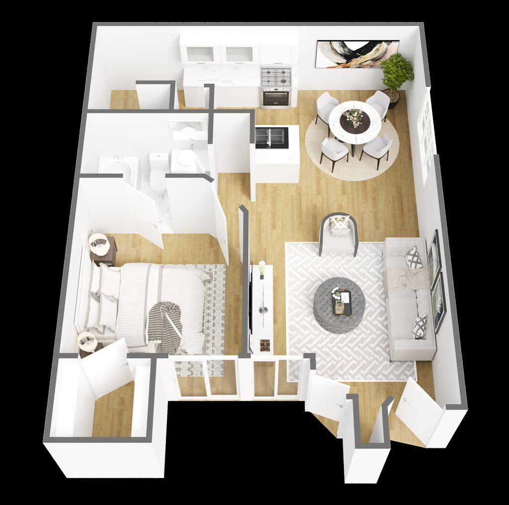 1 Dormitorio, 1 Baño, 860 pies²Disponible AhoraGalería del Modelo