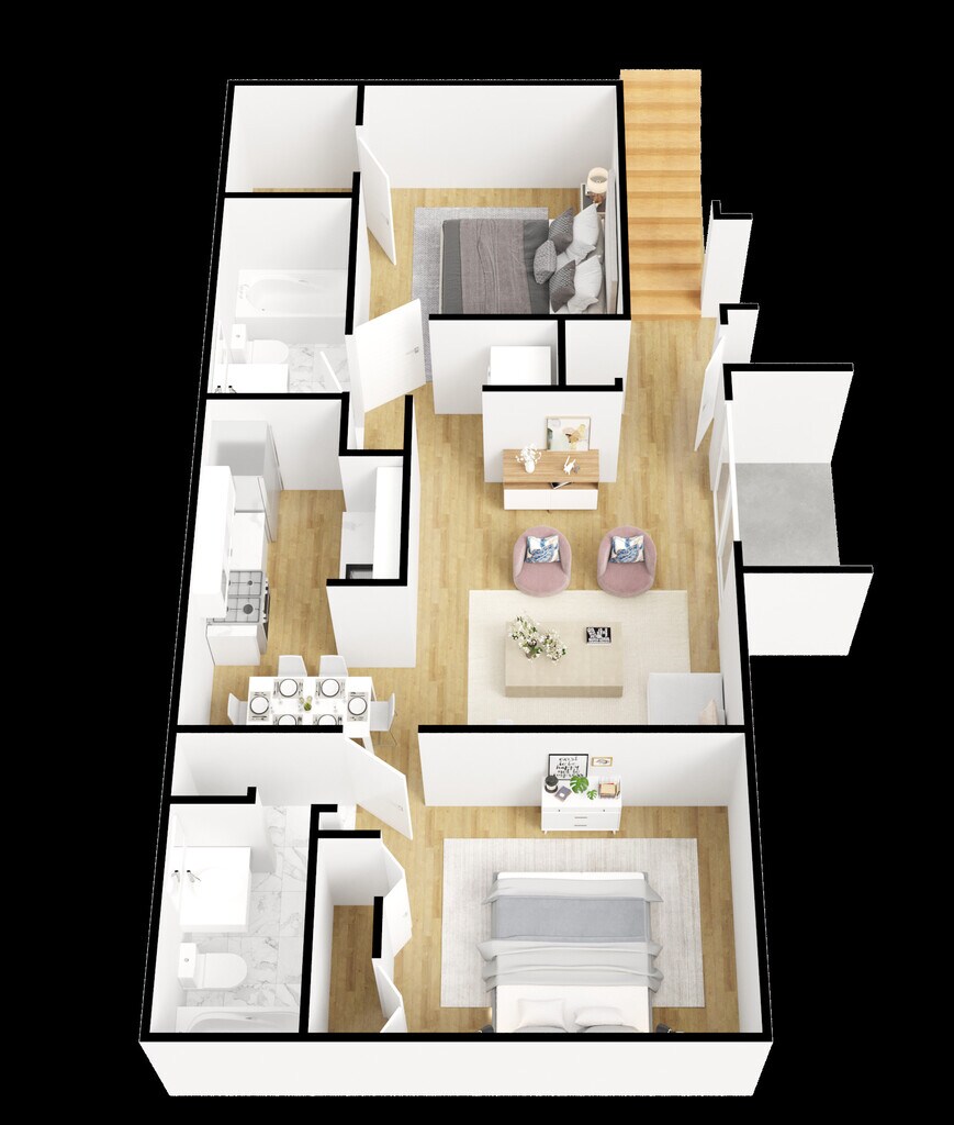 2 Dormitorios, 2 Baños, 960 pies²Disponible AhoraGalería del Modelo