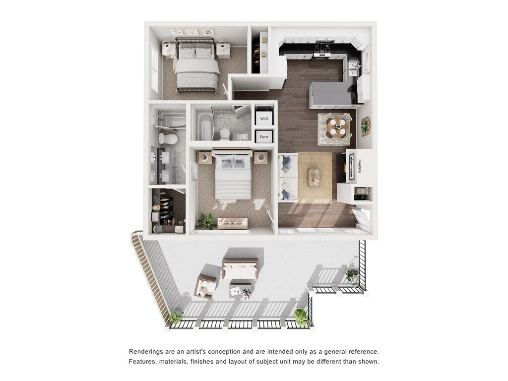 2 Dormitorios, 2 Baños, 869 pies²Galería del Modelo