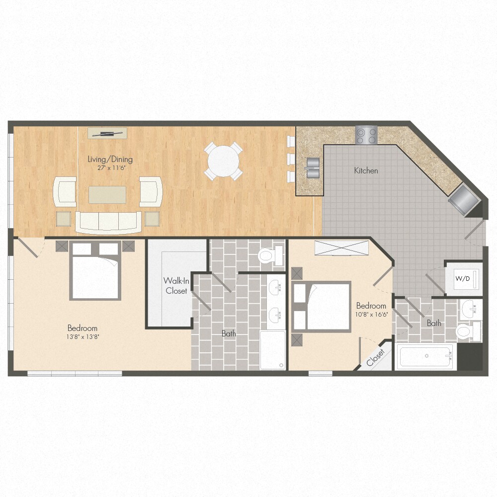 Modelo de apartamento: B32 Dormitorios, 2 Baños, 1281 sq ftDisponible May 2, 2026![]()