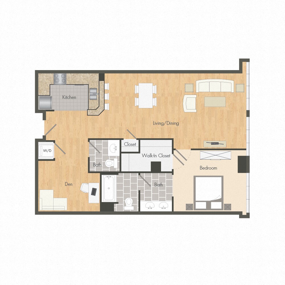 1 Dormitorio, 2 Baños, 1100 pies²Disponible Nov 7Galería del Modelo