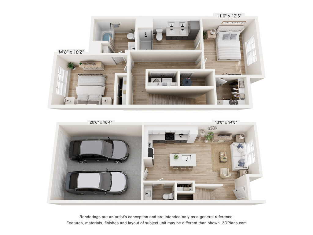 2 Dormitorios, 2.5 Baños, 1244 pies²Disponible AhoraGalería del Modelo