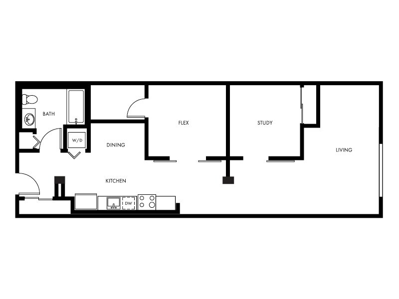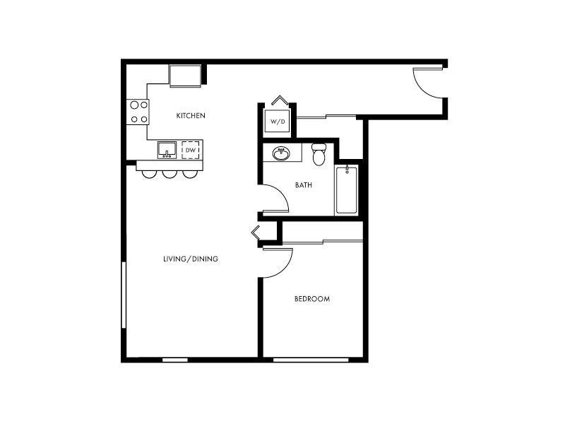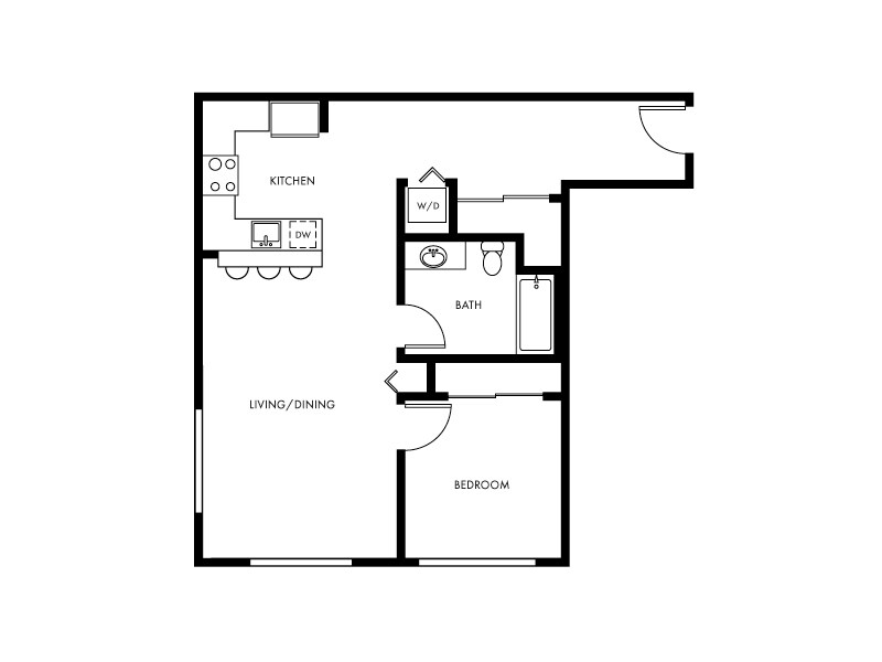 1 Dormitorio, 1 Baño, 640-740 pies²Galería del Modelo