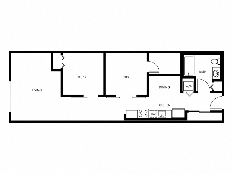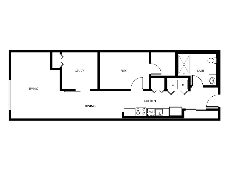Estudio, 1 Baño, 480-626 pies²Galería del Modelo