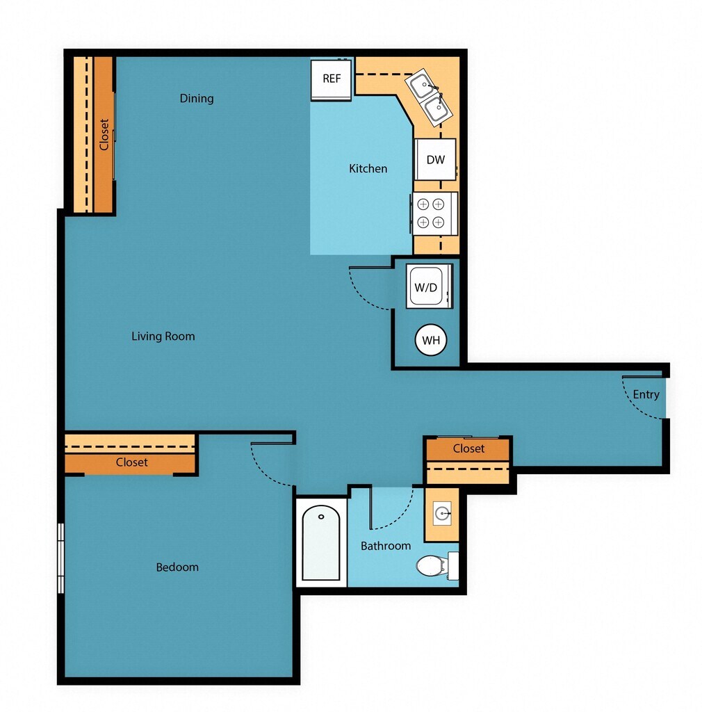 One Bedroom One Bath I - Plano 3 Unidad de apartamento: A_513Modelo de apartamento: One Bedroom One Bath I$1,8461 Dormitorio, 1 Baño, 650 sq ftDisponible November 28, 2025![]()