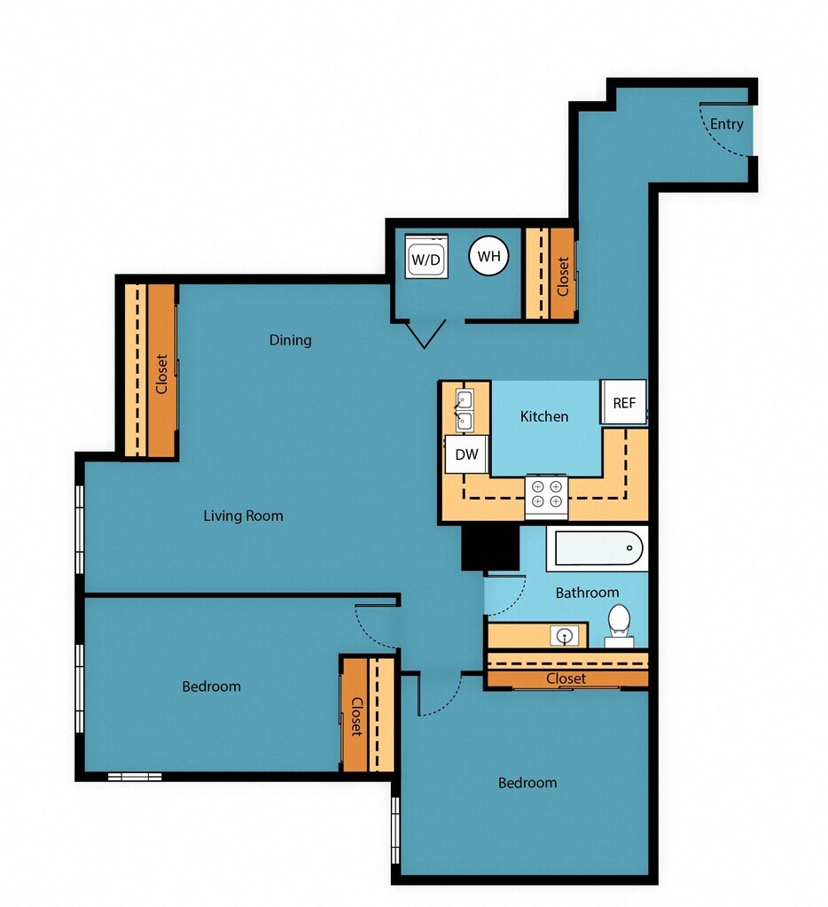 Modelo de apartamento: Two Bedroom One Bath IDesde $2,0002 Dormitorios, 1 Baño, 865-990 sq ftDisponible Ahora![]()