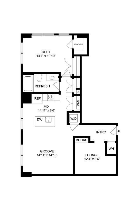 Estudio, 1 Baño, 563 pies²Disponible AhoraGalería del Modelo