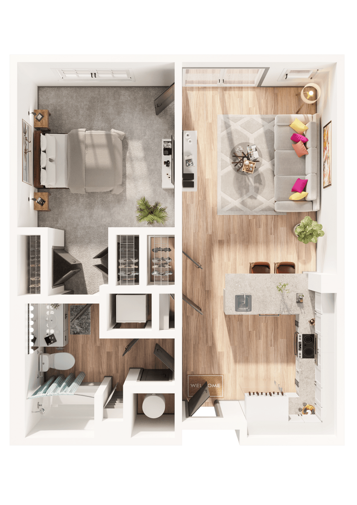 Estudio, 1 Baño, 614 pies²Disponible AhoraEl más grandeEsta opción tiene las unidades más grandes para este modeloGalería del Modelo