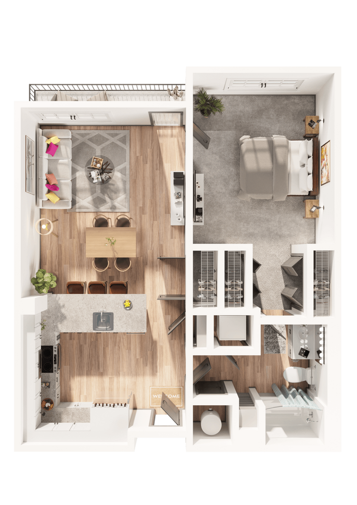 1 Dormitorio, 1 Baño, 863 pies²Disponible AhoraGalería del Modelo