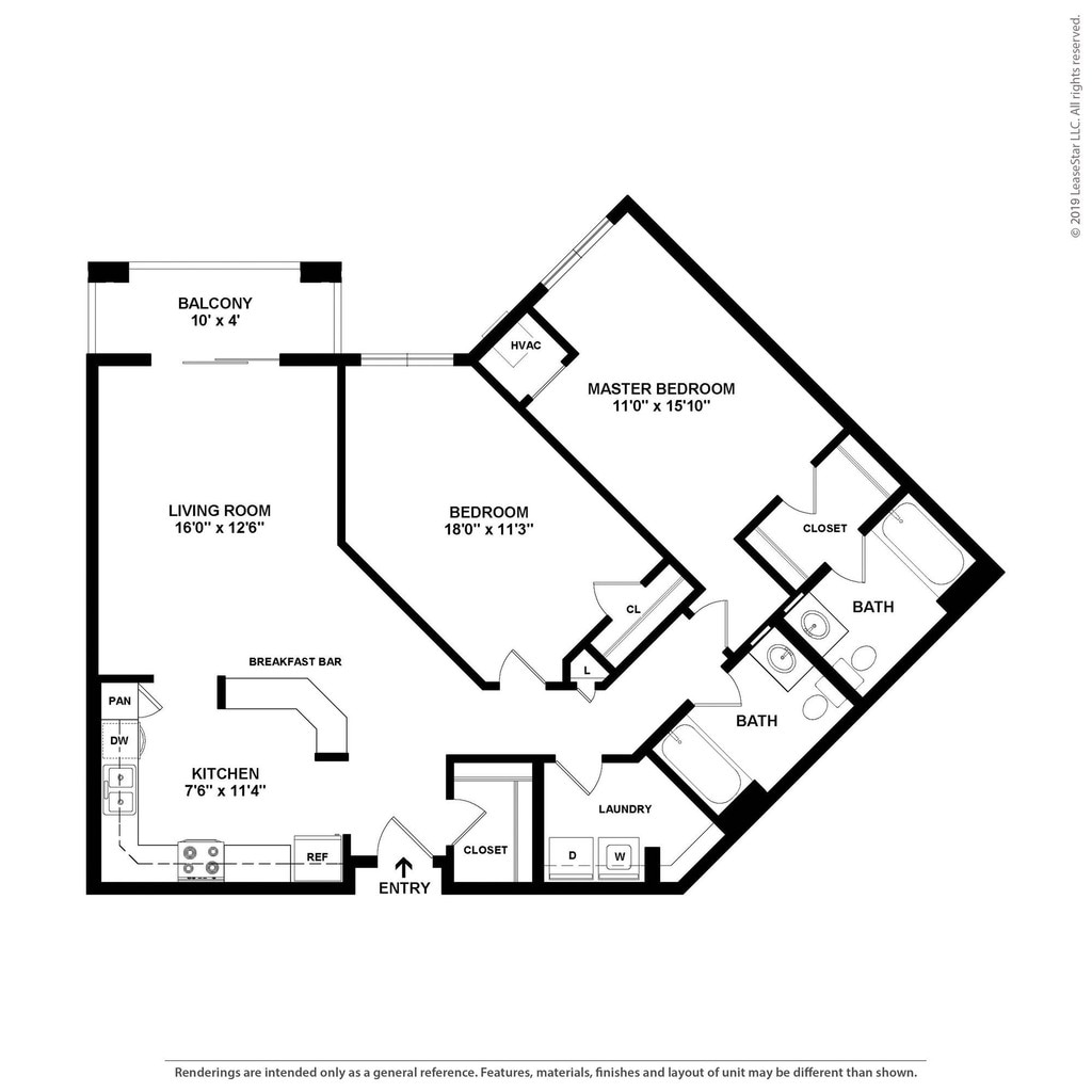 Modelo de apartamento: OakDesde $1,7502 Dormitorios, 2 Baños, 1020 sq ftDisponible Ahora![]()