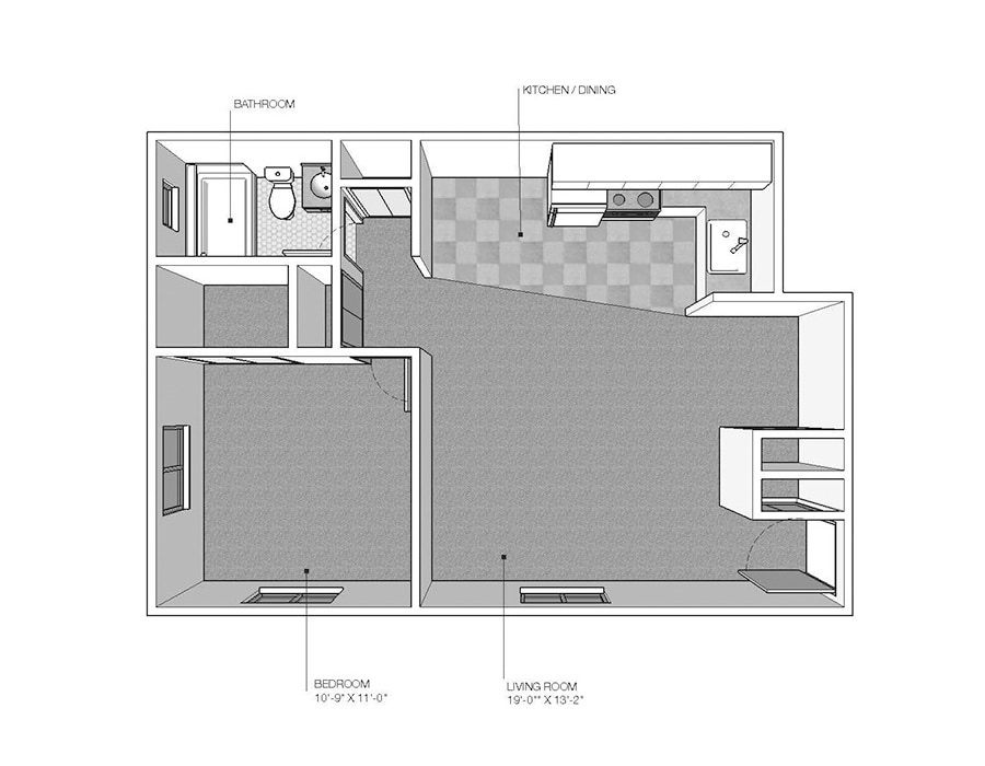 1 Dormitorio, 1 Baño, 540 pies²Galería del Modelo