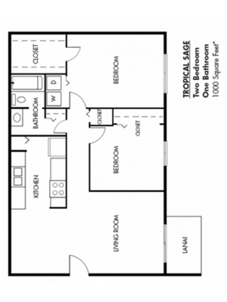 2 Dormitorios, 1 Baño, 1000 pies²Disponible AhoraGalería del Modelo