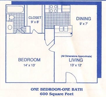 1 Dormitorio, 1 Baño, 600 pies²Galería del Modelo