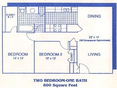 2 Dormitorios, 1 Baño, 800 pies²Galería del Modelo