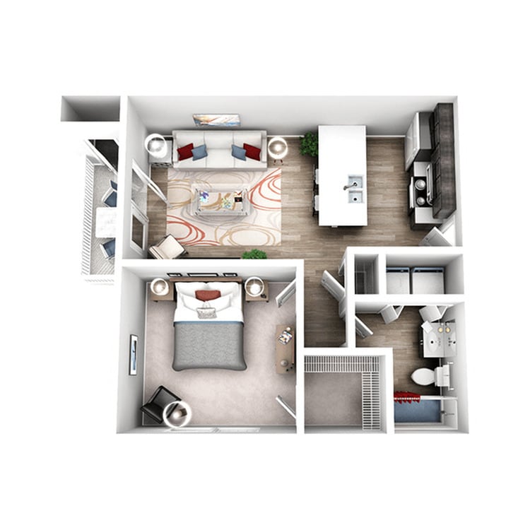 1 Dormitorio, 1 Baño, 600 pies²Disponible AhoraGalería del Modelo