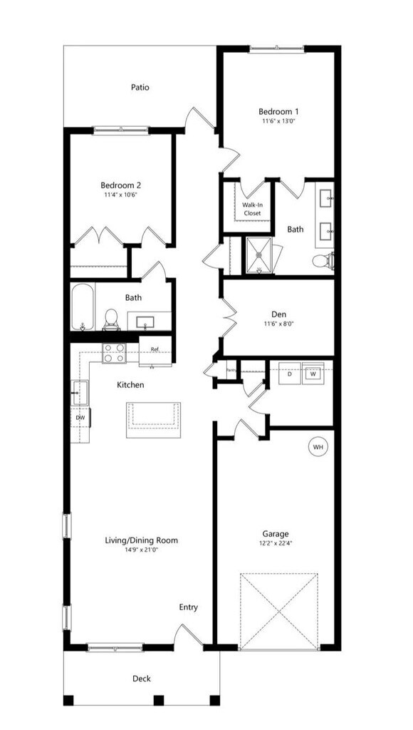 B4 2x2 + Den - Plano 1 Los planos de la planta son una interpretación artística. Todas las dimensiones son aproximadas. Los tamaños o el detalle del producto real y sus especificaciones pueden variar. No todas las características están disponibles en todos los hogares para rentar. Los precios y la disponibilidad están sujetos a cambios. El alquiler que se muestra es mensual. Se pueden aplicar ciertos cargos, por ejemplo, entrega de paquetes, recolección de basura, agua, servicios, etc. Depositos varian. Consulta a un representante para conocer detalles.