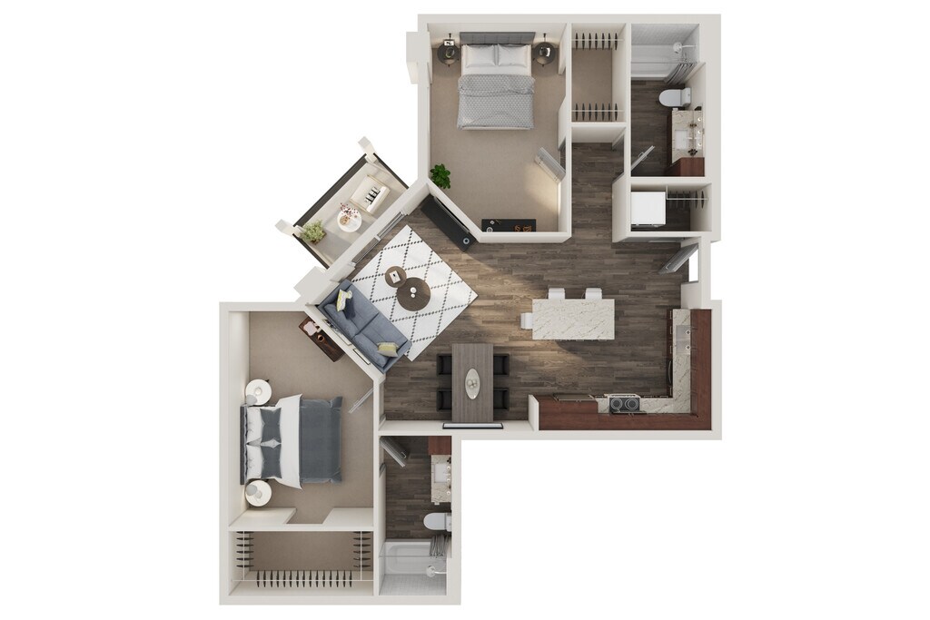 Modelo de apartamento: Quartz$1,8502 Dormitorios, 2 Baños, 990 sq ftDisponible August 1, 2026![]()