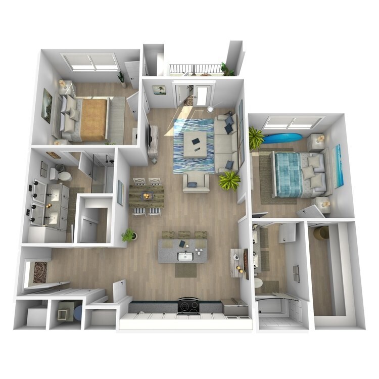 Ven a casa a los lujosos apartamentos nuevos de una o dos habitaciones en alquiler en Wilmington, NC. Amplios espacios de estar cuidadosamente diseñados que cuentan con una cocina inspirada en un chef con encimeras de vidrio de titanio reciclado, elegantes electrodomésticos de acero inoxidable, gabinetes de diseño moderno y balcón privado. Nuestro exclusivo complejo brinda acceso rápido a Mayfaire, The Forum y Wrightsville Beach. ¡Elige tu nuevo oasis de apartamentos en Arboretum West en Wilmington, NC hoy mismo! *Armario de la habitación en el primer y segundo piso solo en la habitación para huéspedes del plano de planta Benny.