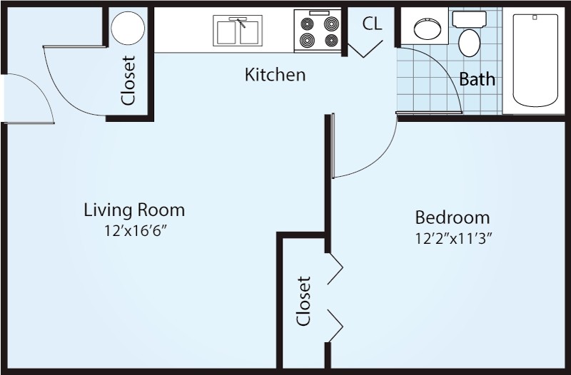 1 Dormitorio, 1 Baño, 500 pies²Disponible AhoraGalería del Modelo