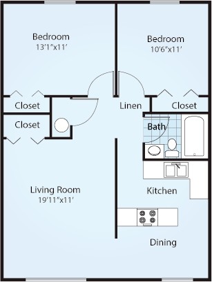 2 Dormitorios, 1 Baño, 860 pies²Disponible AhoraGalería del Modelo