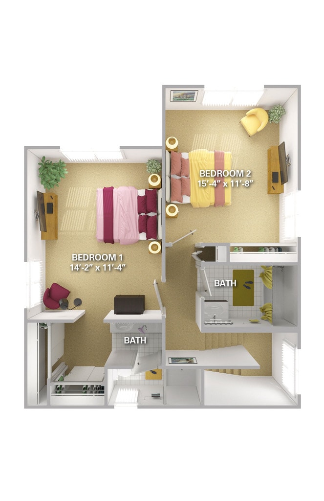 Modelo de apartamento: Evergreen (Second Floor)2 Dormitorios, 2.5 Baños, 1400 sq ftNo Disponible![]()