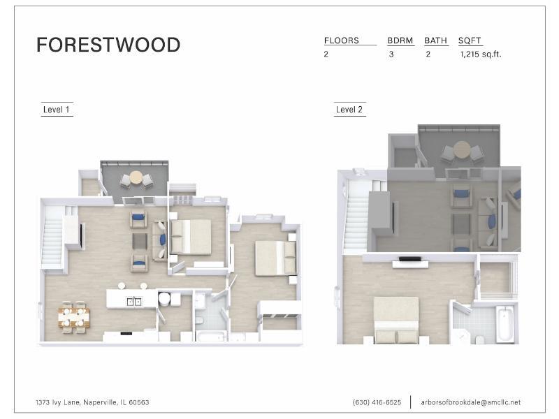 Modelo de apartamento: ForestwoodDesde $2,7903 Dormitorios, 2 Baños, 1215 sq ftDisponible AhoraForestwood - Plano 1