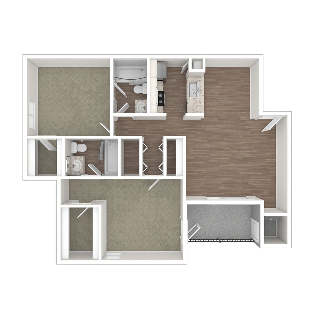 Modelo de apartamento: Cedar - 2x1 UpgradeDesde $9992 Dormitorios, 1 Baño, 945 sq ftDisponible Ahora![]()