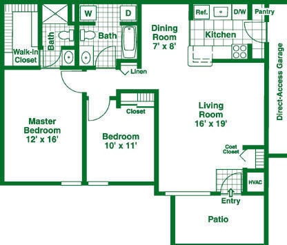 Modelo de apartamento: Two Bedroom Floor PlanDesde $1,1502 Dormitorios, 2 Baños, 1050 sq ftNo Disponible![]()