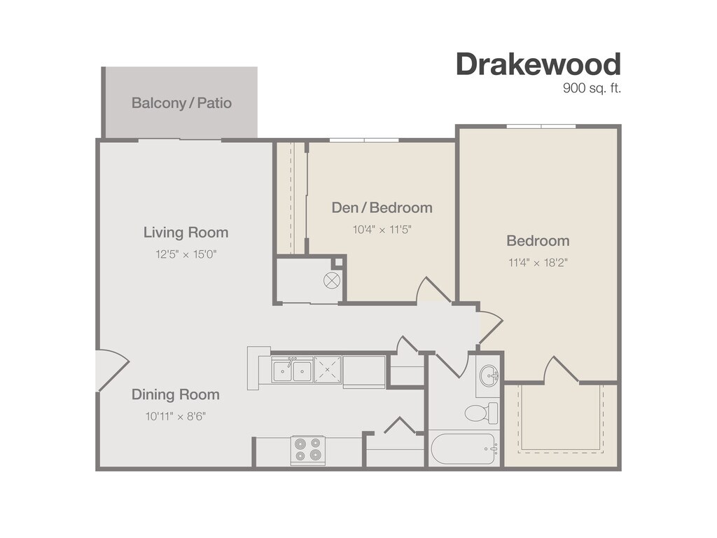 Modelo de apartamento: DrakewoodDesde $1,2912 Dormitorios, 1 Baño, 900 sq ftDisponible Ahora![]()