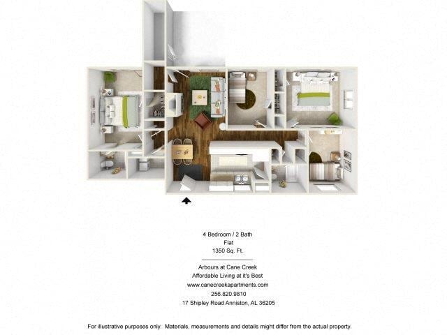 Arbours at Cane Creek ofrece apartamentos de 2 a 4 Dormitorios desde $836 con 1,100–1,350 pies cuadrados. Aquí está el precio actual y la disponibilidad: