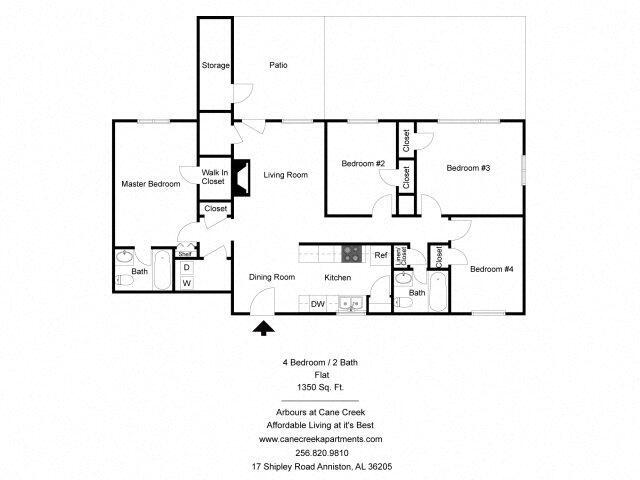 Arbours at Cane Creek se encuentra en el código postal 36205 de Anniston, AL. Esta comunidad está gestionada profesionalmente por Arbour Valley Communities