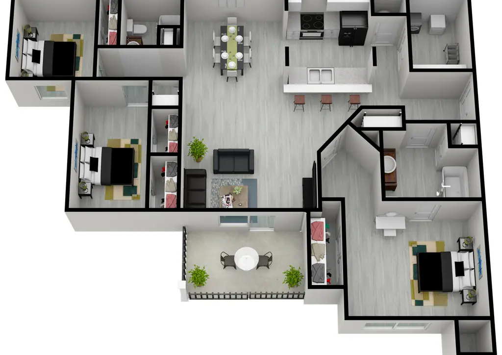 3 Dormitorios, 2 Baños, 1202 pies²Precio Mensual TotalDisponible AhoraPrecio Mensual Total