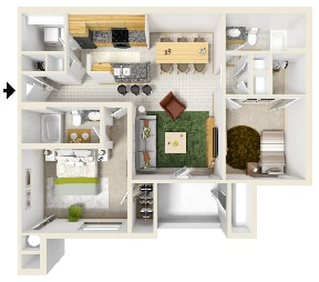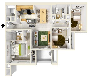 Modelo de apartamento: 3 bed3 Dormitorios, 2 Baños, 1288 sq ftNo Disponible![]()