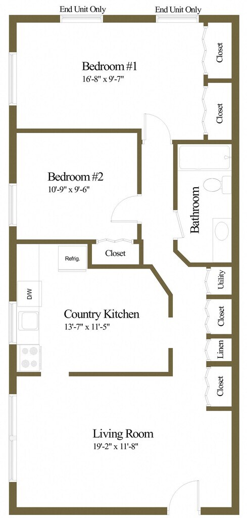 1 Bedroom 1 Bath - Brighton Floor Plan