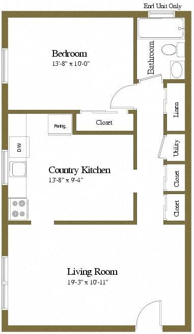 Jr. 1 Bedroom 1 Bath - Devon Floor Plan