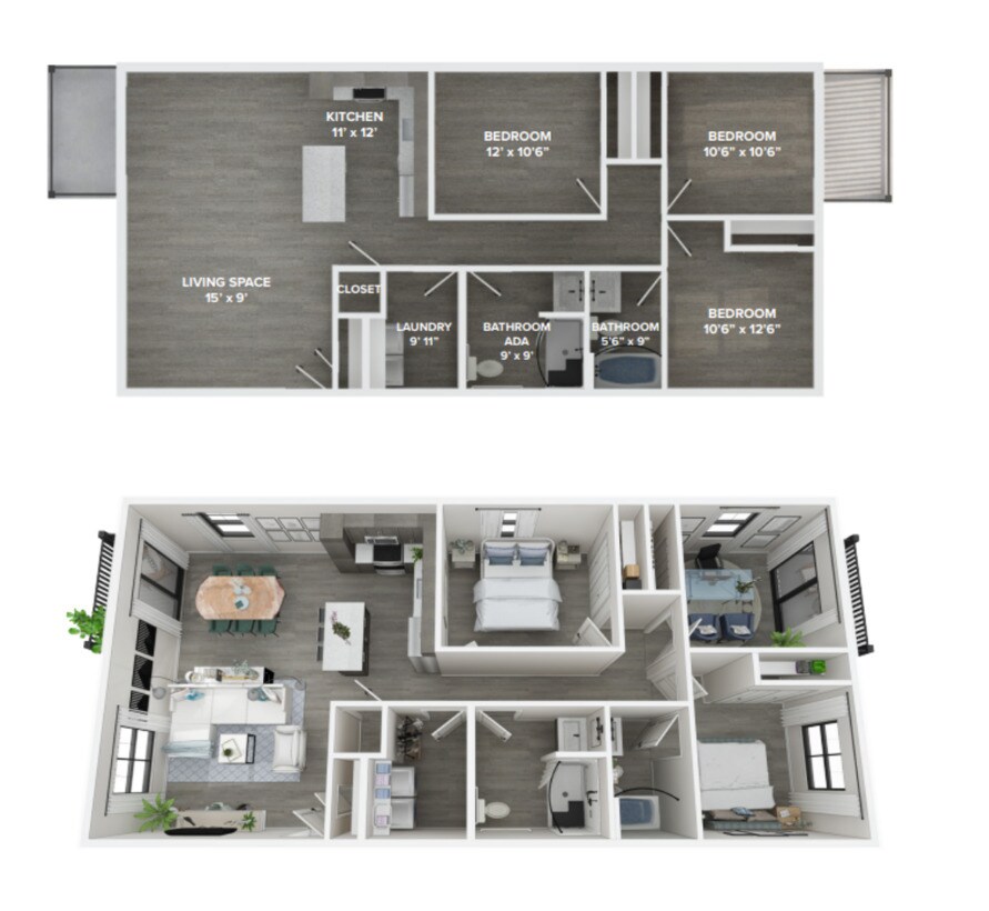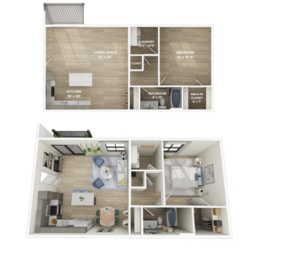 1 Dormitorio, 1 Baño, 792 pies²Disponible AhoraGalería del Modelo