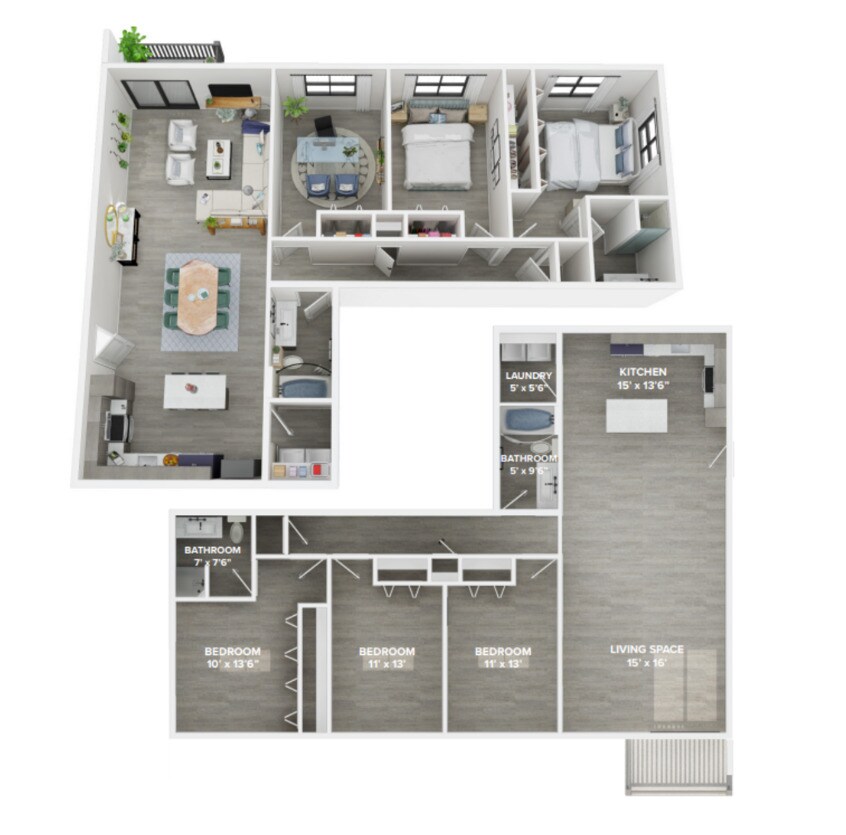 Modelo de apartamento: Allara 1Desde $1,4451 Dormitorio, 1 Baño, 792 sq ftDisponible Ahora![]()