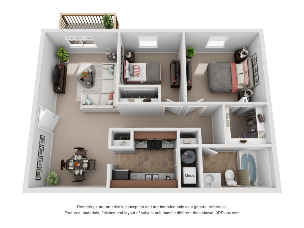 2 Dormitorios, 1 Baño, 870 pies²Disponible AhoraGalería del Modelo