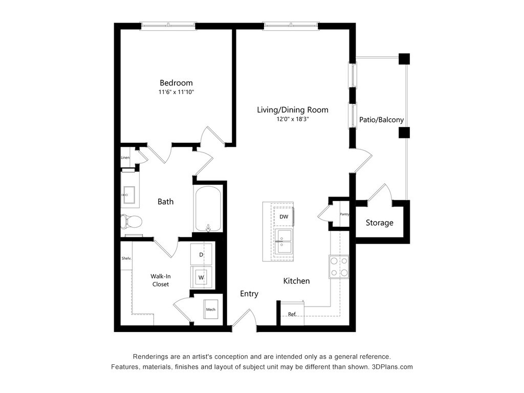 A1.1-50% - Plano 1 Unidad de apartamento: 7-7202Modelo de apartamento: A1.1-50%1 Dormitorio, 1 Baño, 734 sq ftDisponible February 5, 2026A1-60%