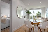 March 6, 2021PROs: Beautiful brand new well designed property, south west side of unit with ceiling to floor panoramic windows showcasing stunning views, stellar staff with quick response time and very attentive, top quality appliances, roof top pet play area, first floor bike storage unit, sizable deck with amazing glass walls and attached outdoor storage unit. *Secured building. Convenient location close to beach , downtown LA, mall and airport. Safe neighborhood. Walking distance to store, gym, food. ...Online portal for payments and maintenance request. Complimentary internet first year. Conference rooms. Trash chutes. Dope remote controlled shades. Smart thermostat. CONs: Very minimal closet space ( no coat closet, no linen closet, bedroom closet in higher cost units are not walk-in and limited space). Limited 2 drawer storage under sink in bathrooms. Floors are vinyl faux wood ( not hardwood as listed ) that takes away from quality esthetics of rest of unit. Gym is small. *Subterranean garage is not gated with security guard only posted in evening hours. Roof top deck no furniture or grills as of current. Rent cost even with new build move- in special is above average (for the area and comparable square footage) for the higher cost units. Covers no utilities cost at all as most apartments complexes include at least water or gas. Overall great experience.Leer MásReseña de Apartments.com