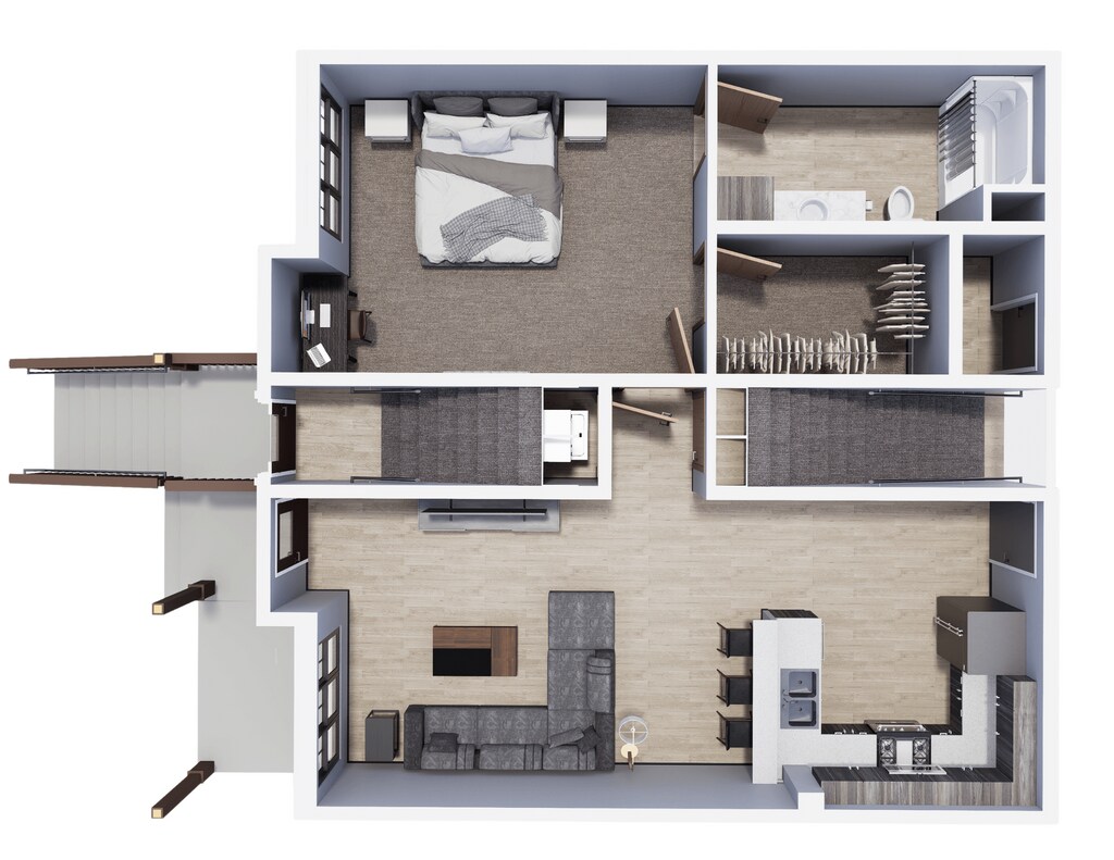 1 Dormitorio, 1 Baño, 736 pies²Disponible AhoraGalería del Modelo