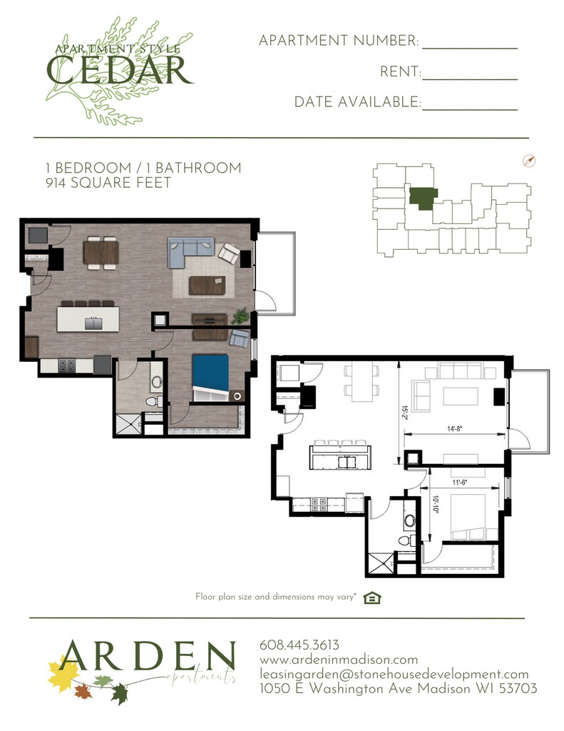Ubicado en el histórico y activo barrio de Tenney-Lapham, Arden es un complejo de apartamentos nuevo que presenta lo mejor en vida de calidad y lujo que Madison tiene para ofrecer. Estos apartamentos modernos presentan pisos de planta espaciosos, ventanas extra grandes, pisos de tablones de vinilo en todo el lugar y electrodomésticos de acero inoxidable Energy Star. La ubicación perfecta de Arden proporciona fácil acceso al transporte público, eventos de la comunidad, restaurantes, mercados, tiendas y otros servicios. Disfruta de todas las comodidades que Arden tiene para ofrecer mientras te deleitas con las vistas panorámicas de los generosos espacios de Arden. Únete a nosotros hoy mismo. Tu nuevo hogar en Arden y LA VIDA TAL COMO LA QUIERES te espera.